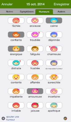 Plongez dans un calendrier mensuel clair et interactif, où chaque détail de votre cycle prend vie. Visualisez d'un coup d'œil vos périodes passées et futures, les jours d'ovulation potentielle et la fenêtre de fertilité. Mais Contrôle des Règles va bien au-delà : c'est votre journal intime numérique pour consigner au quotidien vos humeurs et symptômes menstruels. Surveillez également votre poids et votre température corporelle, pour une vue d'ensemble complète de votre santé cyclique. Des icônes ludiques sur votre page d'accueil vous indiquent discrètement votre période d'ovulation prévue et votre fenêtre fertile de 8 jours, vous tenant informée sans effort.