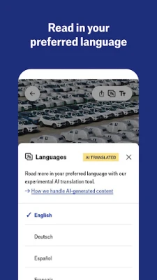 Espresso from The Economist redéfinit votre accès à l'information avec une suite de fonctionnalités innovantes. Profitez de nos rapports et analyses, rédigés par des experts humains, désormais disponibles en traduction quasi instantanée dans plusieurs langues : français, allemand, mandarin, espagnol, en plus de l'anglais. Ces traductions, bien que facilitées par des modèles avancés d'IA, sont scrupuleusement révisées et affinées par des locuteurs natifs pour garantir précision et nuance. Découvrez "The World in Brief", un résumé essentiel de l'actualité mis à jour trois fois par jour, des articles de fond rapides à lire en une minute, des versions audio pour une écoute nomade, ainsi que des podcasts quotidiens et de courtes vidéos pour enrichir votre compréhension. Égayez votre journée avec le Chiffre, la Citation et le Graphique du jour, et explorez une sélection d'articles hebdomadaires dans l'onglet "For You".