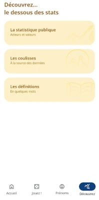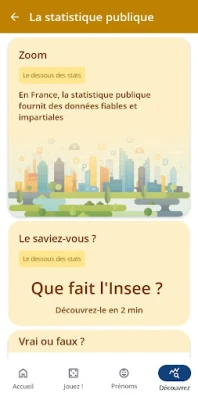 Loin d'être une simple base de données, l'application Insee transforme l'apprentissage en jeu. Mettez vos connaissances à l'épreuve avec des quiz stimulants et des activités ludiques, ou plongez dans une exploration fascinante des prénoms attribués en France depuis 1900, une fonctionnalité unique pour les curieux d'histoire et de culture. C'est une invitation à interagir avec les chiffres d'une manière totalement nouvelle.