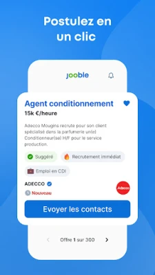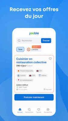 Lorsque l'opportunité parfaite se présente, Jooble simplifie la démarche de candidature : joignez votre CV et postulez directement, personnalisant votre approche pour chaque offre. Créez un compte pour sauvegarder vos annonces favorites, suivre des entreprises spécifiques et recevoir des alertes personnalisées dès l'apparition de nouveaux postes correspondant à vos attentes. Au-delà de la recherche et de la candidature, Jooble enrichit votre parcours professionnel grâce à des conseils de carrière, des informations détaillées sur les entreprises, et des ressources précieuses via notre blog et Centre d'aide pour optimiser votre CV et maximiser vos chances de succès.