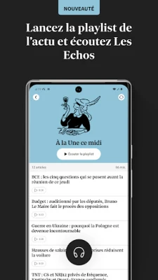 Plongez au cœur de l'actualité économique et financière avec l'application Les Echos. Chaque jour, découvrez une perspective inégalée sur les enjeux qui façonnent la France, l'Europe et le monde. Nos experts décryptent pour vous les événements majeurs à travers des analyses approfondies, des enquêtes exclusives, des reportages terrain et des entretiens percutants. Que vous souhaitiez explorer l'économie, la politique, les marchés financiers, le monde des entreprises, les innovations des start-ups ou les stratégies de patrimoine, Les Echos vous offre une couverture exhaustive. Restez connecté grâce aux alertes personnalisables qui vous informent en temps réel des développements cruciaux, des coulisses du CAC40 aux dynamiques des PME, sans oublier les tendances clés de secteurs comme l'automobile, l'énergie, le tourisme ou la défense.