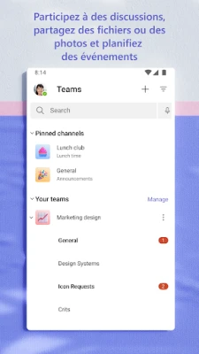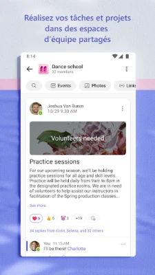 Microsoft Teams réunit communautés, famille et collègues pour accomplir leurs tâches. Profitez d'un espace unique avec événements, conversations, réunions, stockage et calendrier. Collaborez en sécurité grâce aux appels vidéo et au partage de fichiers intégré.
