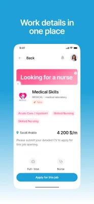Développez continuellement vos compétences et votre savoir-faire avec **NurseHub GCC**. Accédez à une bibliothèque de cours de formation continue médicale (CME), enrichissez votre expertise grâce à des conseils de carrière stratégiques et exploitez des ressources précieuses conçues pour affûter vos compétences. La plateforme facilite également une communication sécurisée et directe avec les établissements de santé, vous permettant de dialoguer efficacement avec les hôpitaux et de finaliser vos contrats avec une simplicité remarquable.