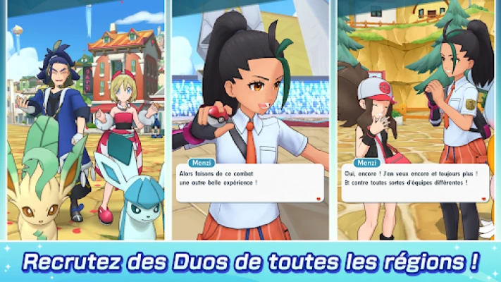 Préparez-vous à des affrontements stratégiques où l'harmonie entre Dresseur et Pokémon est la clé du succès. Participez à des combats en équipe de trois contre trois, où la synergie de vos duos sera mise à l'épreuve pour triompher. Mais l'aventure ne s'arrête pas là : faites éclore des Œufs rares pour accueillir de nouveaux compagnons dans votre équipe, et élevez-les pour dominer les classements. Pour immortaliser vos moments favoris, le mode photo vous permet de diriger une séance digne des studios de Pokéwood, en choisissant jusqu'à trois Dresseurs, des fonds éclatants, des cadres stylés et des effets uniques, créant ainsi des souvenirs visuels inoubliables au sein de Pokémon Masters EX.