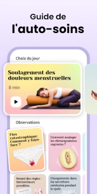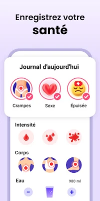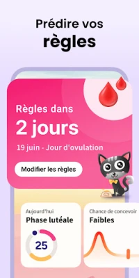 Suivi de règles et d'ovulation : le Calendrier des règles, plébiscité par plus de 70 millions d'utilisateurs et noté 4.9, anticipe avec précision vos cycles, règles, fertilité et ovulation. Essentiel pour la conception ou le contrôle des naissances, il suit symptômes et humeurs, servant de journal de santé féminine personnel.