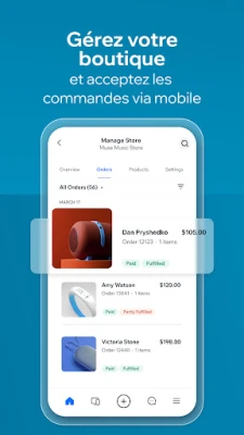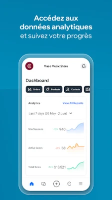 Gérez l'intégralité de votre activité et de votre site où que vous soyez. Suivez les performances de votre blog, les ventes de votre boutique e-commerce, ou les consultations de votre portfolio directement depuis l'application Wix. Notre éditeur de site intégré vous permet de gérer vos produits, vos articles de blog et vos campagnes marketing en toute simplicité. Transformez l'engagement de votre audience en opportunités concrètes : publiez des articles de blog percutants, facilitez le partage et les commentaires, et gérez même des collaborateurs. Proposez et mettez à jour vos services, acceptez les réservations en ligne, et encaissez des paiements sans commission, tout en gérant vos agendas, vos équipes et vos clients depuis une interface unique.